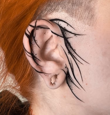 "Olen Theia ja olen tatuoinut täysipäiväisesti vuodesta 2023. Taide on aina ollut iso osa elämää, mutta en ikinä uskonut, että siitä saisi ihan oikeiden aikuisten työn joku päivä. Tykkään yhdistellä tatuoinneissani pehmeitä varjoja vahvojen kontrastien kanssa. Haluan jatkuvasti kehittää itseäni artistina, joten haasteita otetaan mielellään vastaan!"