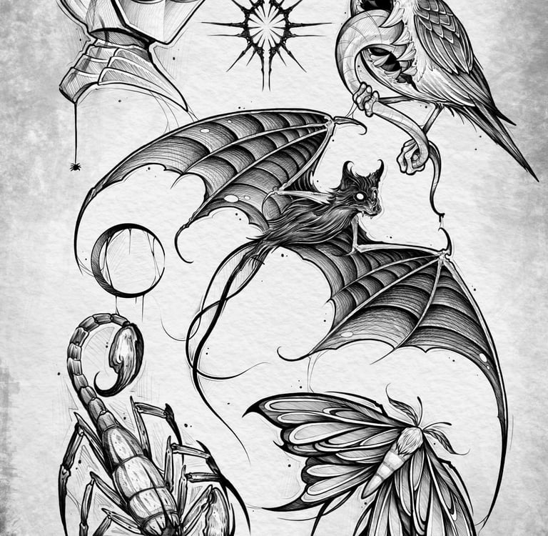 Näytämme osan vapaista tatuointimalleista tässä postauksessa, sekä Instagramissa, mutta koko valikoiman löydät liikkeen ikkunasta tapahtumapäivänä. Kuvia ei voi varata etukäteen.